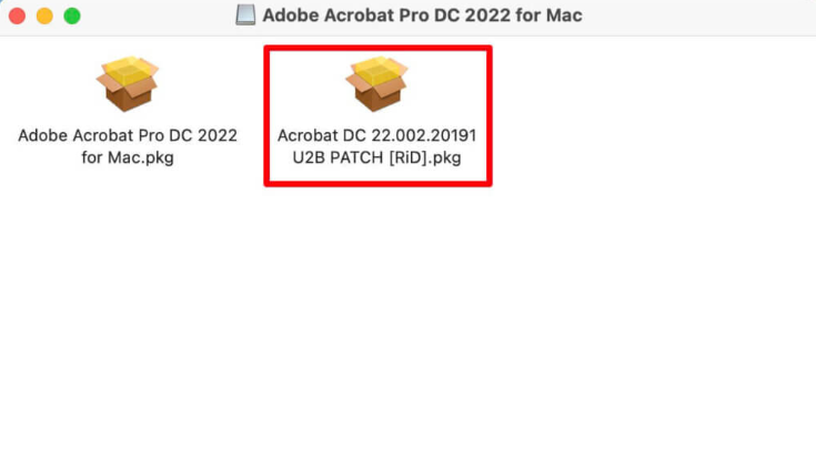 그러면 일단 첫 번째 빨간 테두리로 표시를 해놓은 Adobe Acrobat Pro DC 2022 for Mac.pkg를 클릭해 줍니다.